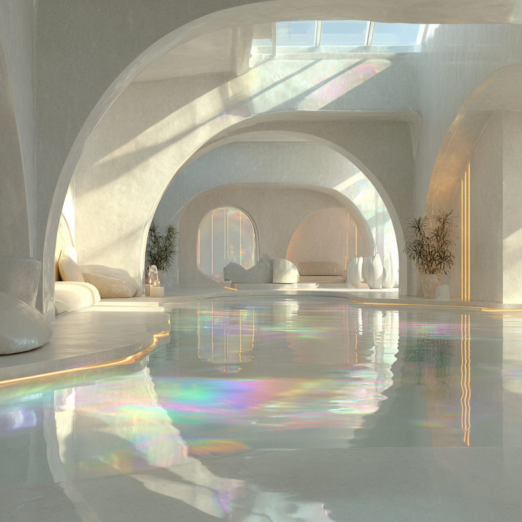 Indoor Pool in White · Gold · Rainbow Iridescence